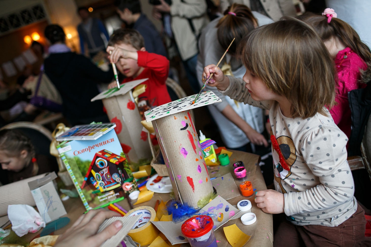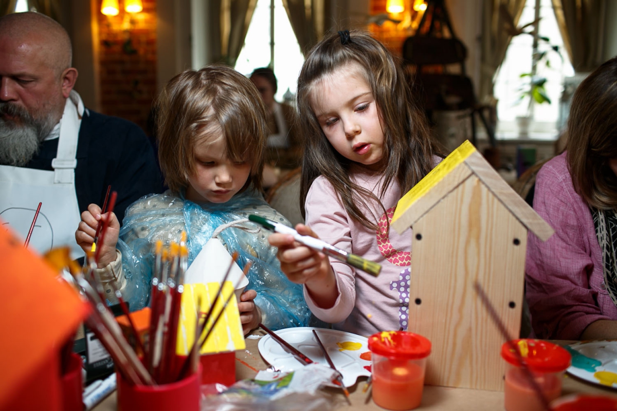 Кафе Кипарис и его веранда на один день превратился в настоящую мастерскую. На улице было прохладно, но солнечно – настоящий апрель. Однако всем гостям было жарко – ведь во всю кипела работа, мы делали скворечники! Бумажные, деревянные, и из металла, по готовому проекту и фантазийные по индивидуальным эскизам, покрашенные в яркие цвета и задекорированные пастелью…. Все эти милые веселые домики «разошлись» по Москве и Подмосковью в поисках жильцов! А еще Мастера научили взрослых и детей плести гнезда из соломы и прутьев, вырезать ножом птичек из березы, шить милых уточек из лоскутов и просто так дарить людям улыбки! Получился настоящий Family day, взрослые и дети вместе творили, ели вкусный весенний торт от наших кондитеров и делились новостями.